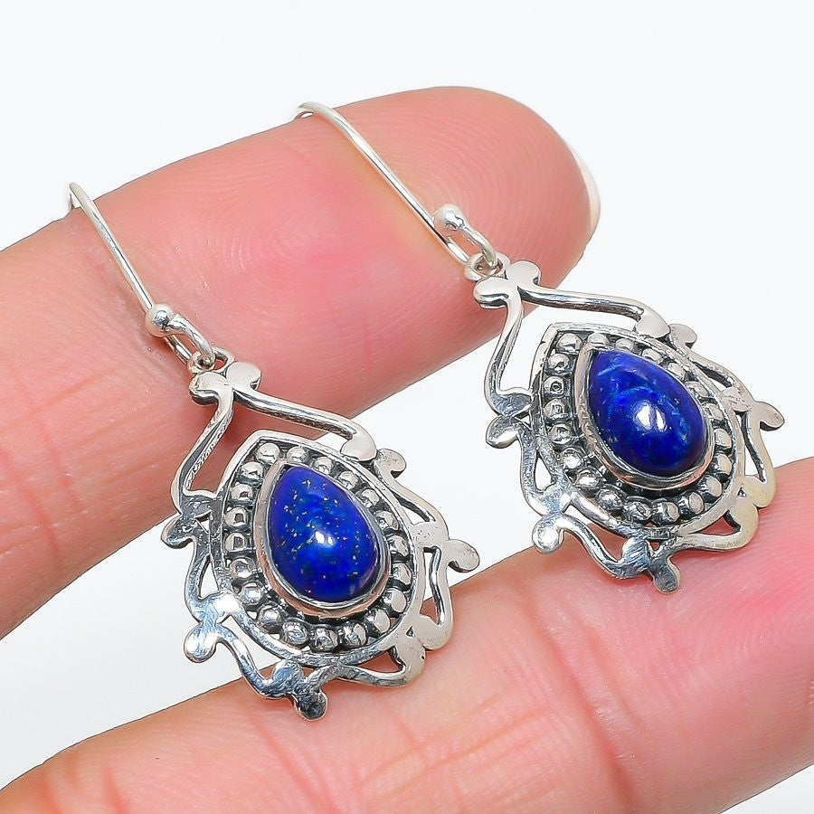 Natural Lapis Lazuli Solid Silver Trendy Hook Dangle Drop Anniversary Earrings