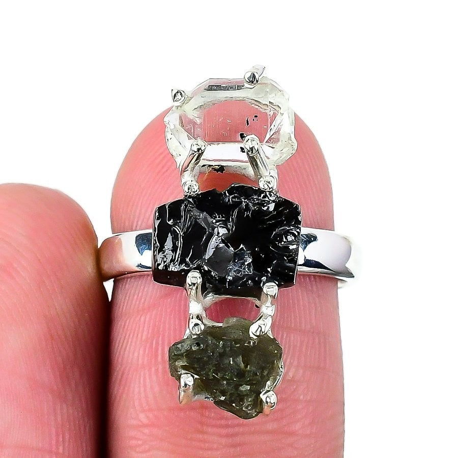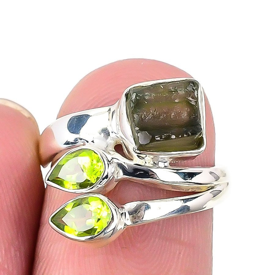 Sisters Day Sale Moldavite Gemstone Solid Silver Boho Statement Ring Size 5.5
