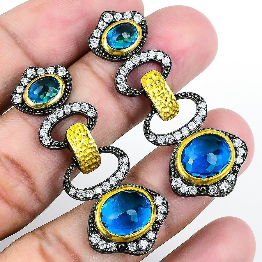 London Blue Topaz Gemstone 925 Silver Wedding Dangle Engagement Earrings Jewelry