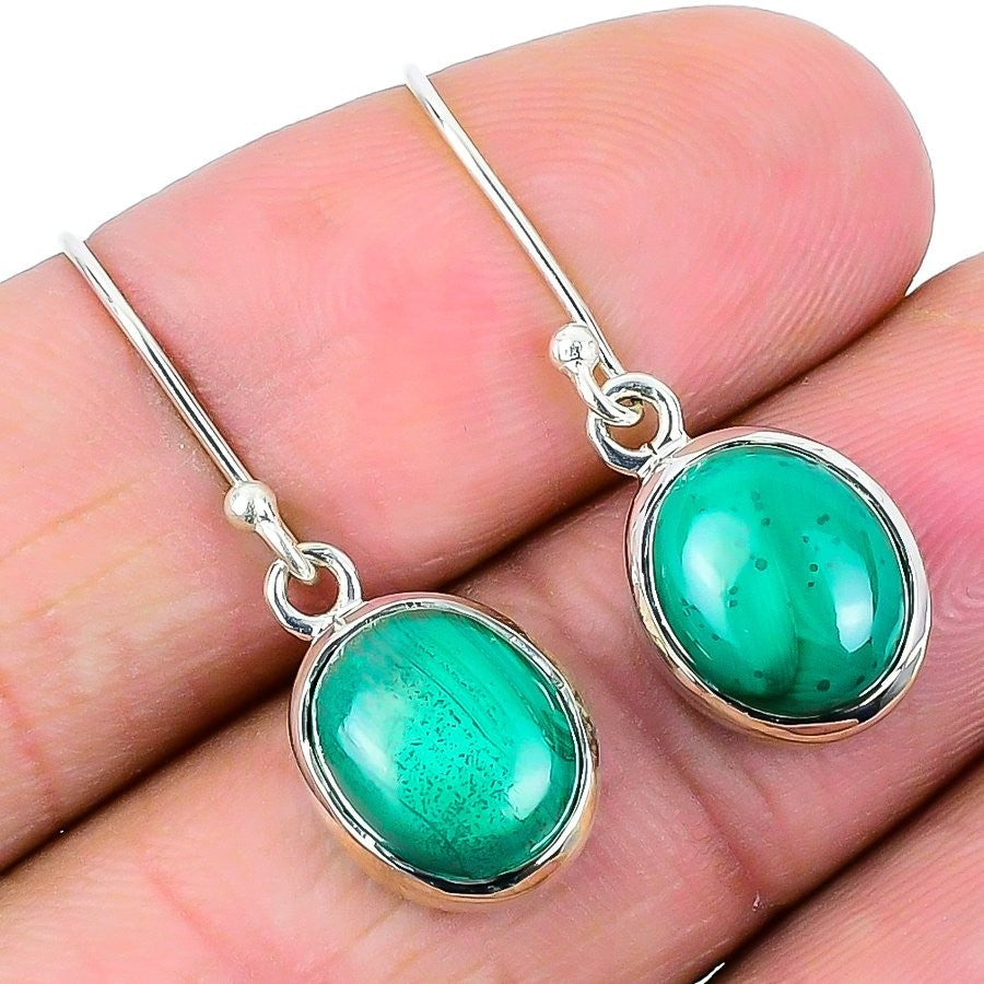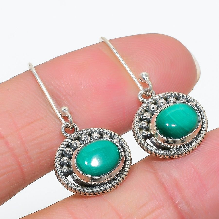 Malachite Gemstone Solid Silver Dangle Engagement Friend Gift Earrings Jewelry