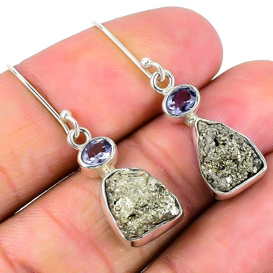 Natural Meteoroid 925 Sterling Silver Hook Artisan Drop Dangle Wedding Earrings