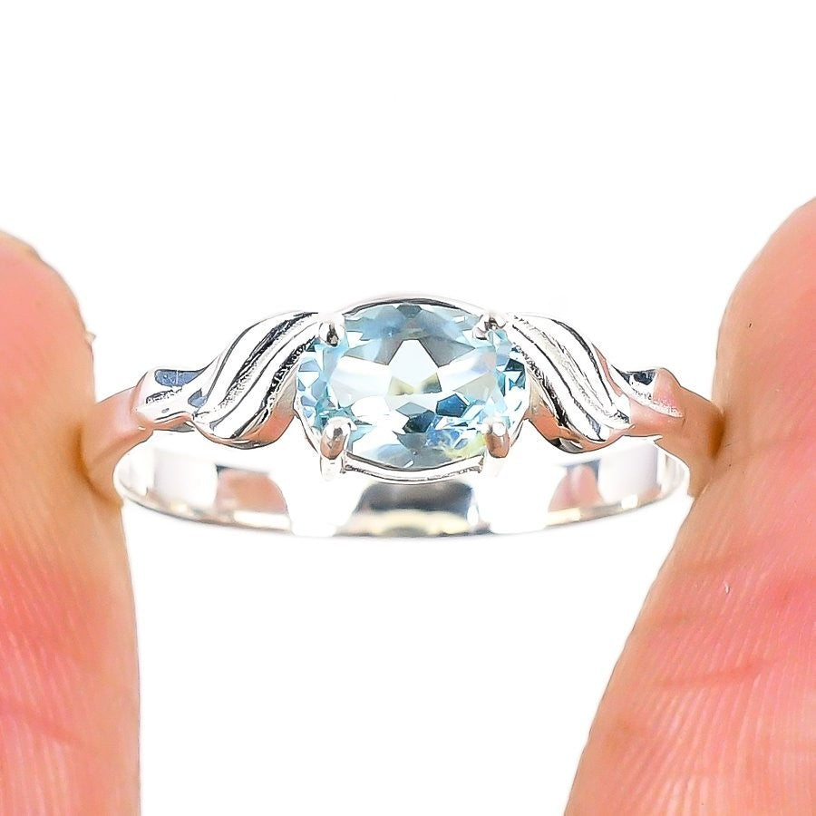 Aquamarine Stone Wedding Statement Friend Gift Ring Size 6.5 925 Sterling Silver