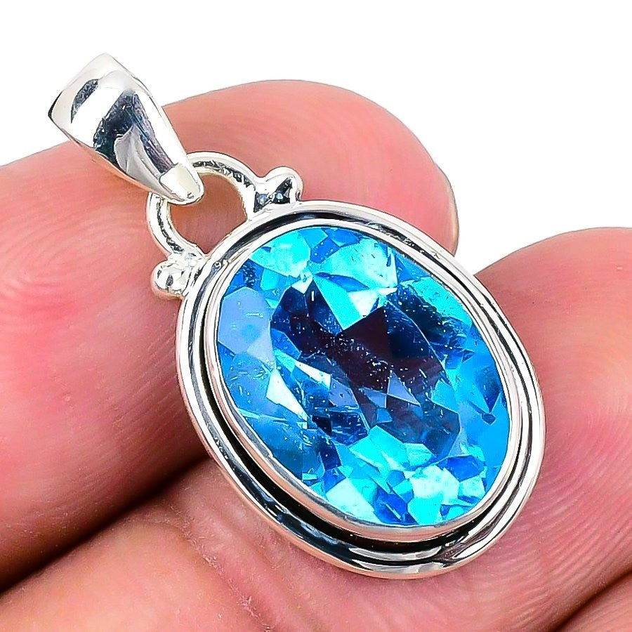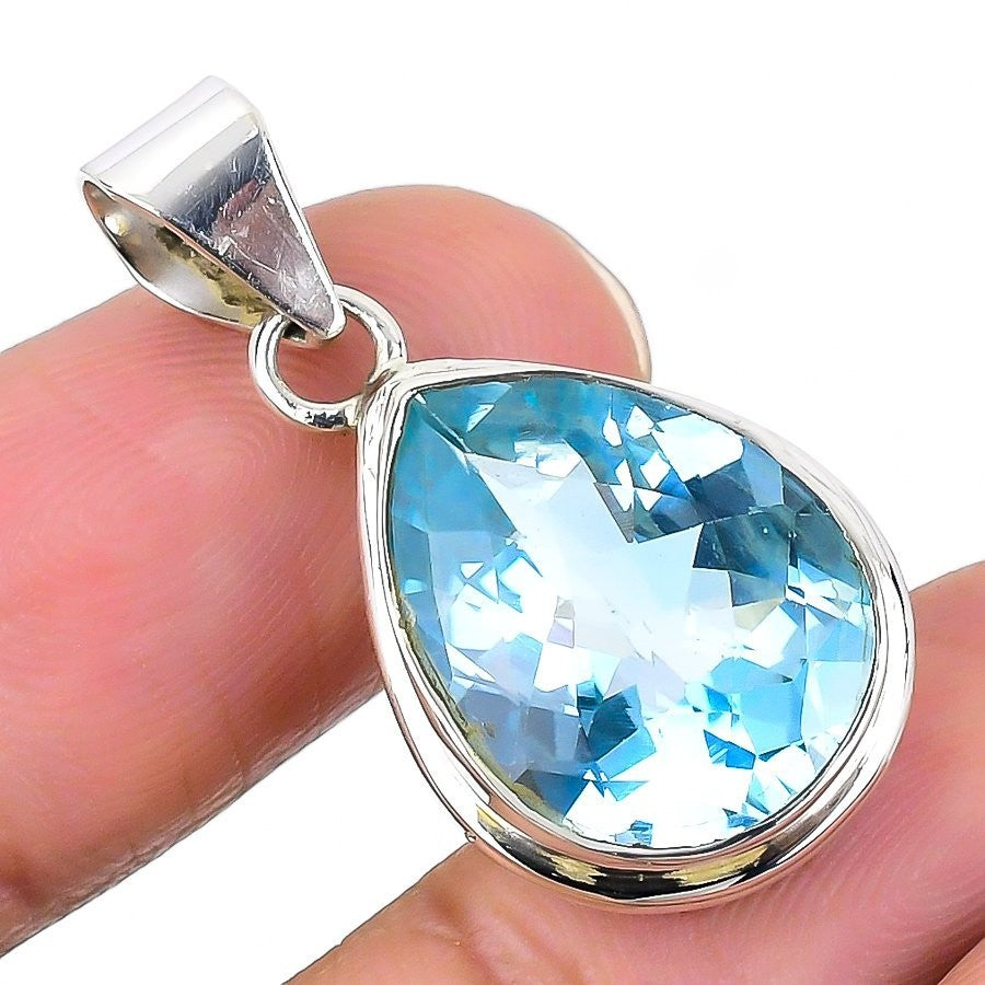 Natural Swiss Blue Topaz Solid Silver Anniversary Mother Boho Pendant Jewelry