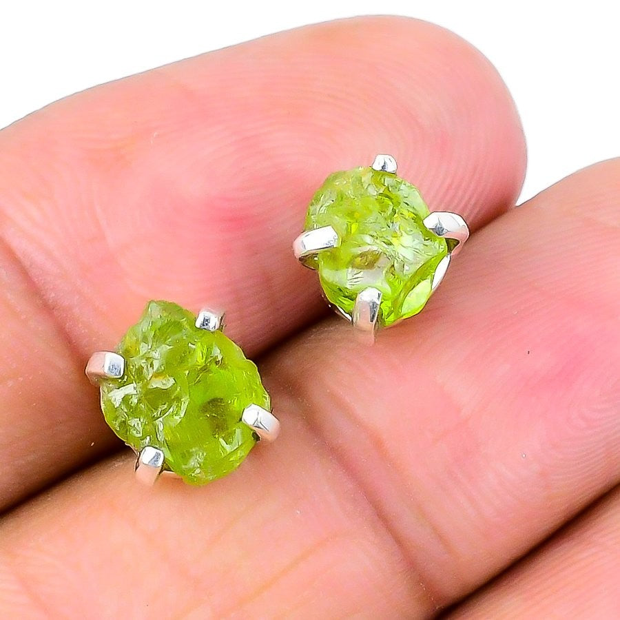 Peridot Gemstone Solid Silver August Birth Hook Stud Sisters Gift Wife Earrings