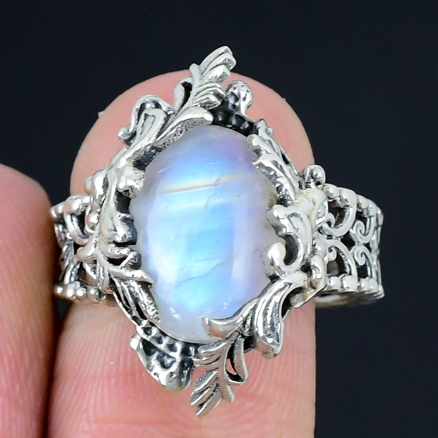 Natural Rainbow Moonstone Solid Silver Wedding Band Birthday Ring Jewelry Size 9