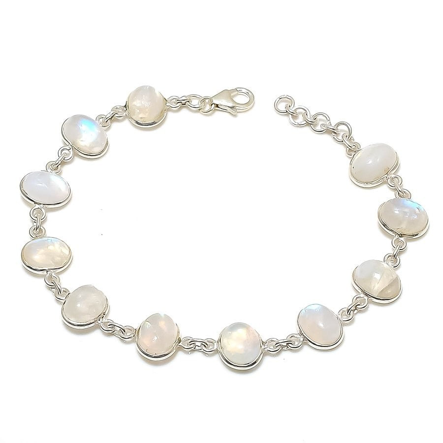 Rainbow Moonstone Gemstone Solid Sterling Silver New Chain Wife Bracelet Jewelry