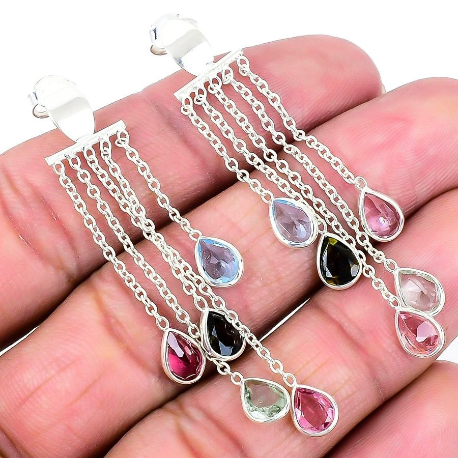 Root Chakra Tourmaline Stone Solid Sterling Silver Drop Dangle Boho New Earrings