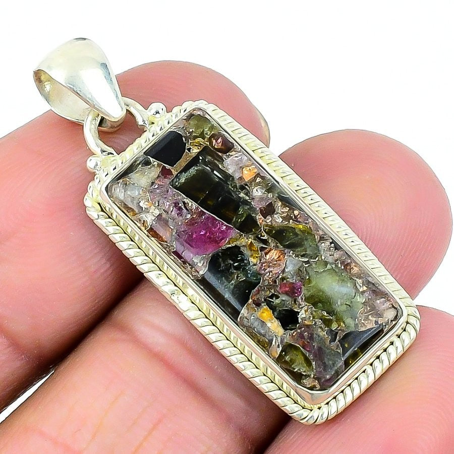 Watermelon Tourmaline Gemstone Solid Silver Wedding Trendy Art Deco New Pendant