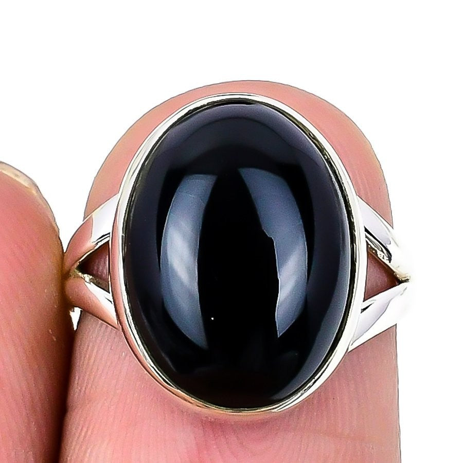 Sisters Day Sale Natural Black Onyx Statement Root Chakra Ring 925 Silver US 5.5