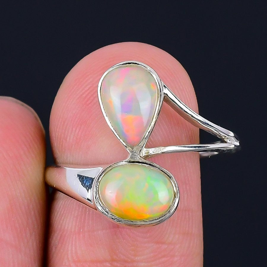 Ethiopian Opal Gemstone 925 Solid Silver Wedding Statement Ring Jewelry Size 9.5