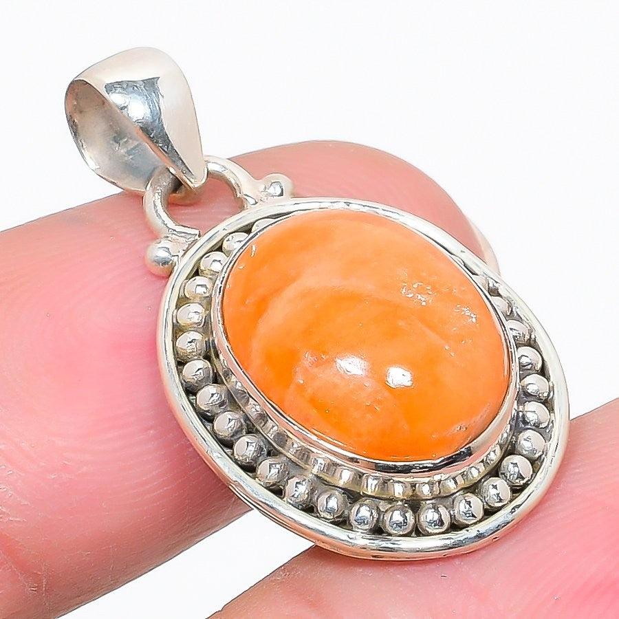 Friendship Day Deal Orange Spiny Oyster Stone Sterling Silver Pendant Jewelry
