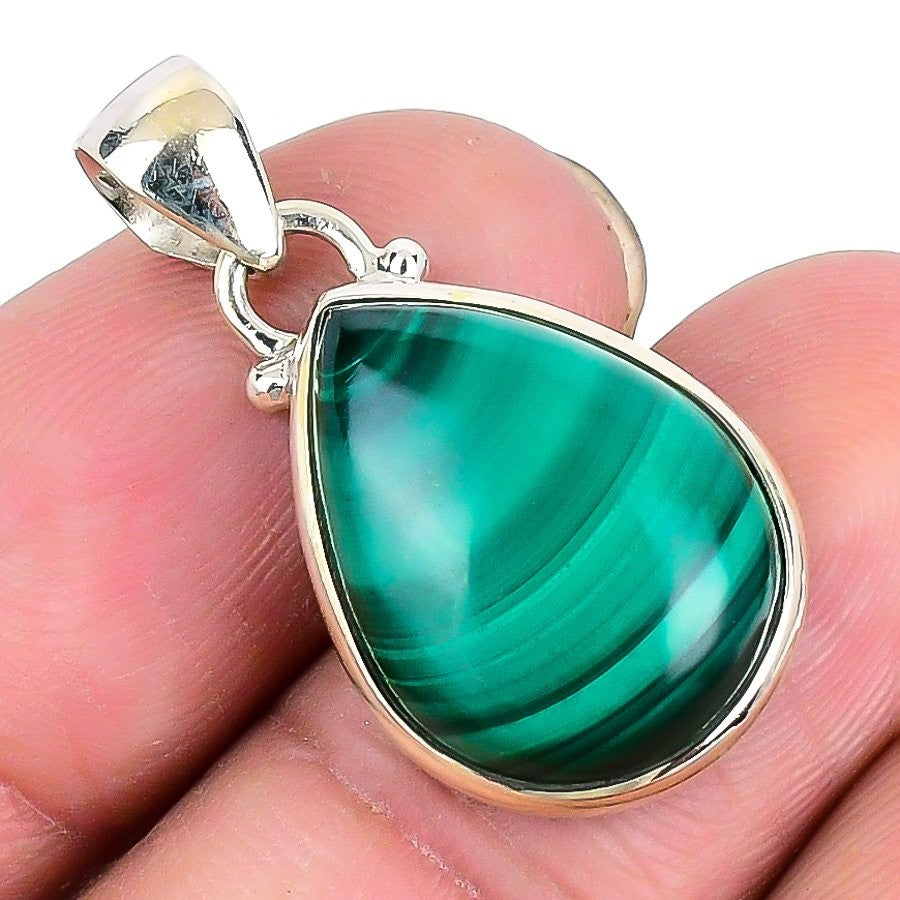 Heart Chakra Malachite Gemstone 925 Silver Bezel Sister Wedding Pendant Jewelry