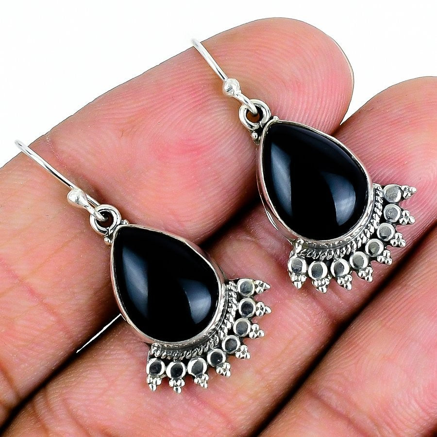 Root Chakra Black Onyx Stone Bezel Dangle Drop Wedding New Earrings Solid Silver
