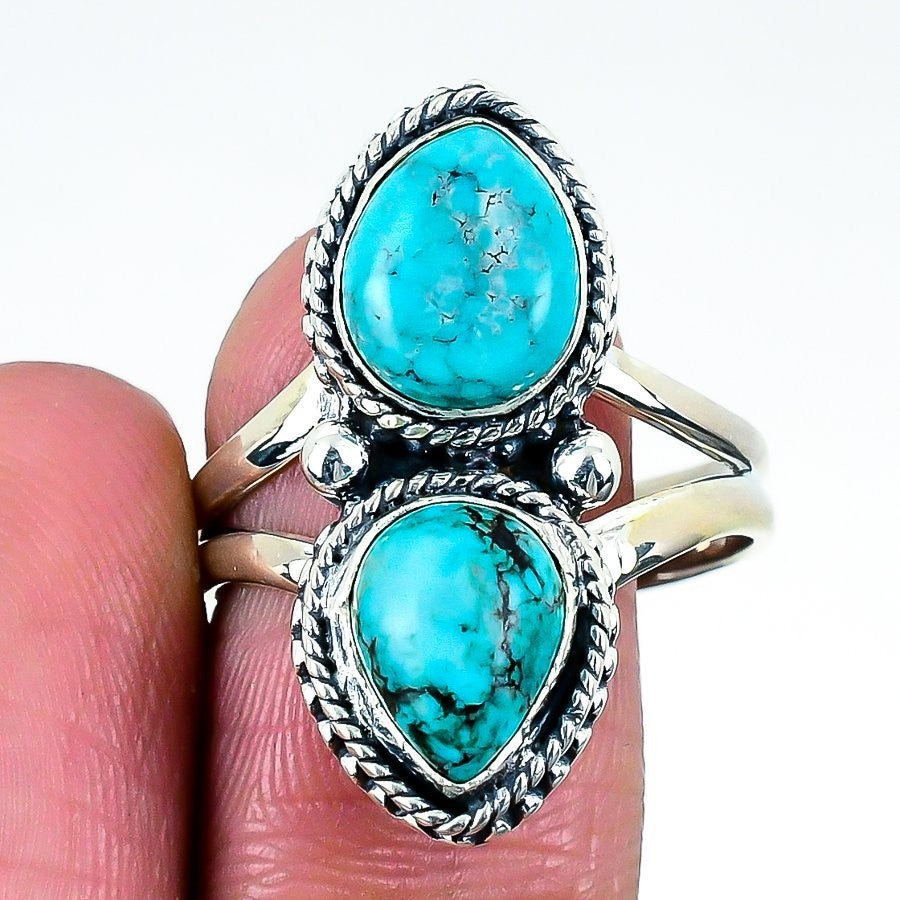 Tibetan Turquoise Gemstone Solid Sterling Silver Band Statement Ring Size 11.5
