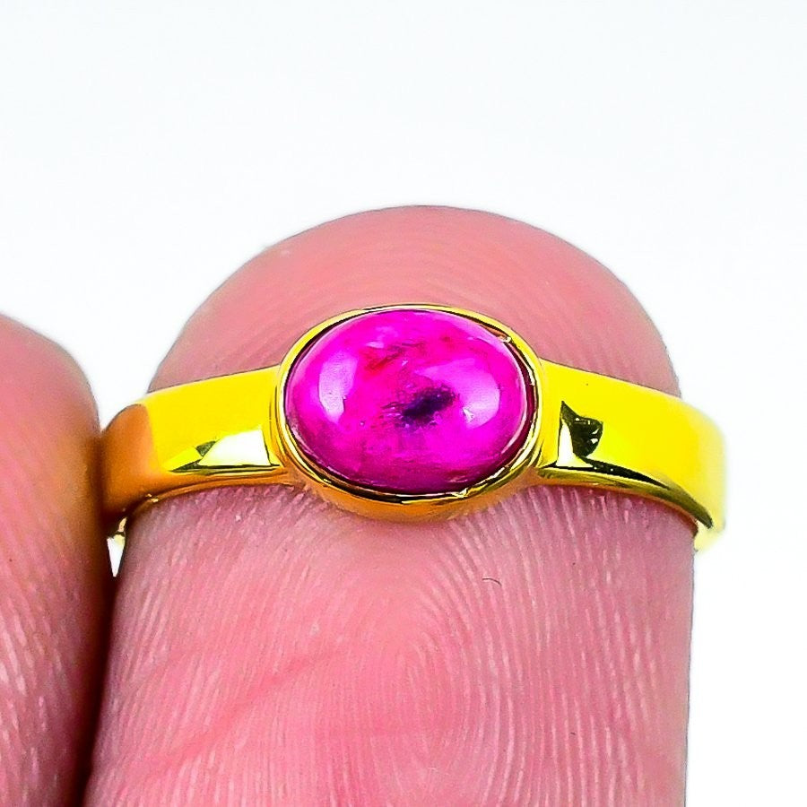 Root Chakra Kashmir Red Ruby Gemstone Solid Silver Band Artisan Wife Ring US 5.5