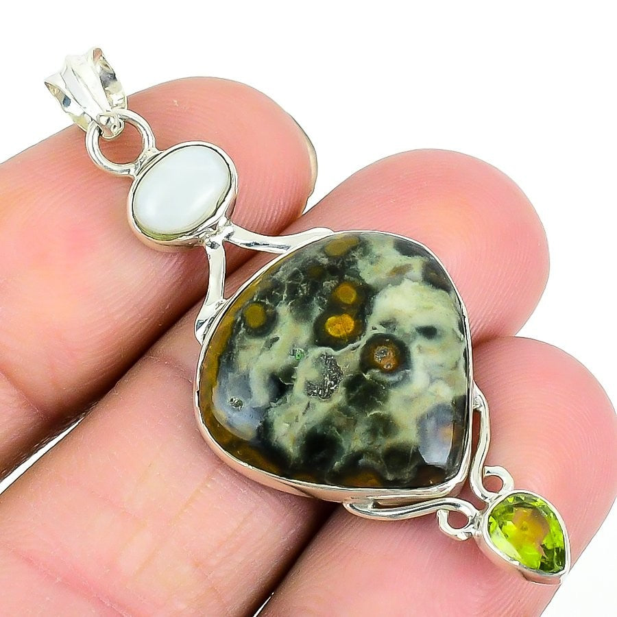 Friendship Day Deal Ocean Jasper Stone 925 Sterling Silver Bezel Unique Pendant