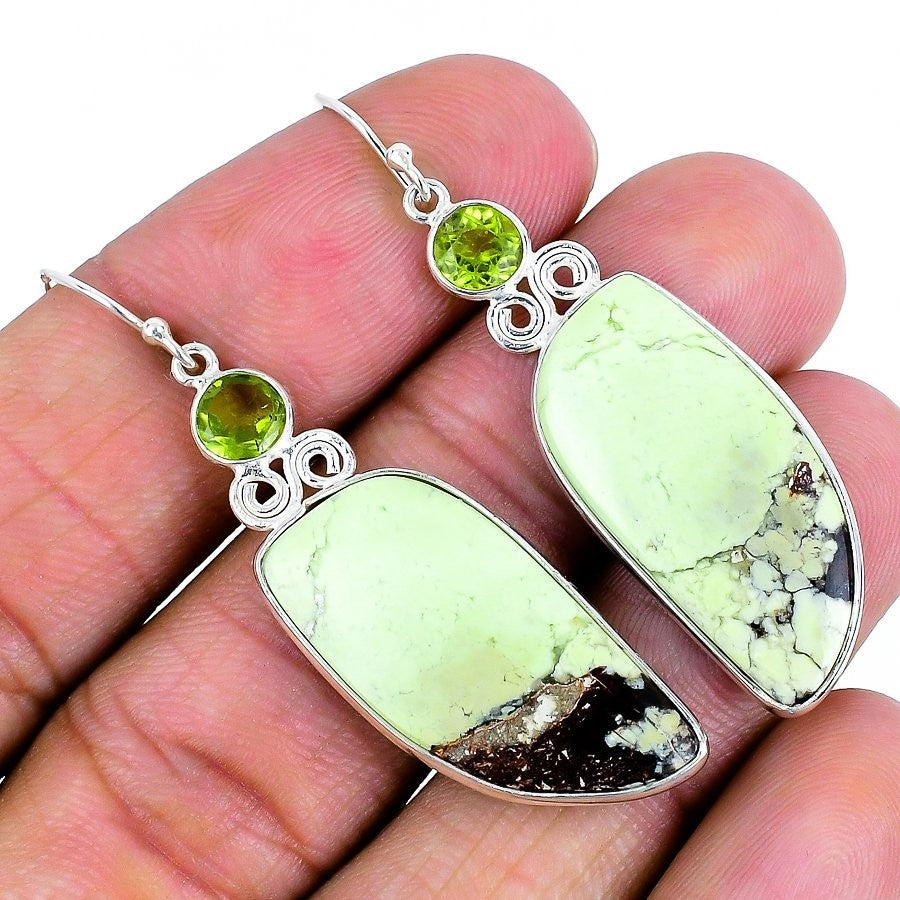 Natural Lemon Chrysoprase Daughter Boho Drop Dangle Earrings Jewelry 925 Silver