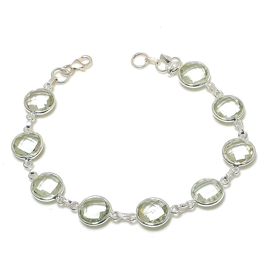 Green Amethyst Gemstone 925Ā SolidĀ Silver Engagement New Chain Birthday Bracelet