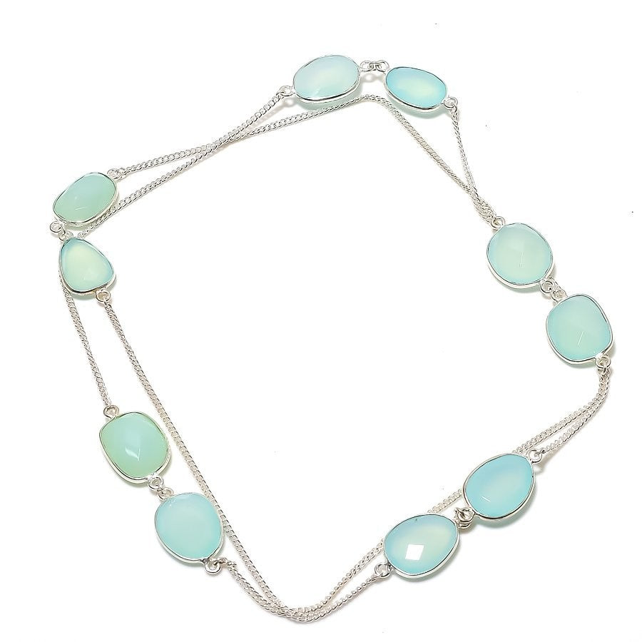 Aqua Chalcedony Stone 925 Silver Bezel Chain Friendship Day New Necklace Jewelry