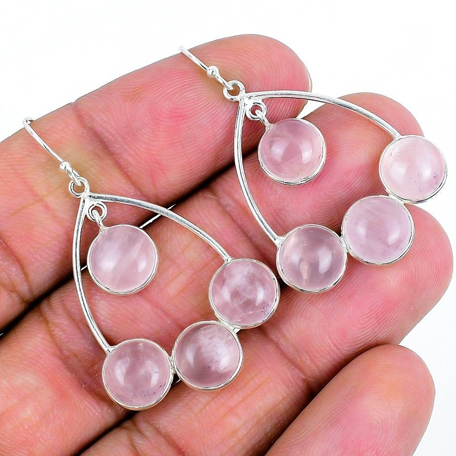 Rose Quartz Gemstone Dangle Daughter Engagement New Earrings 925 Sterling Silver