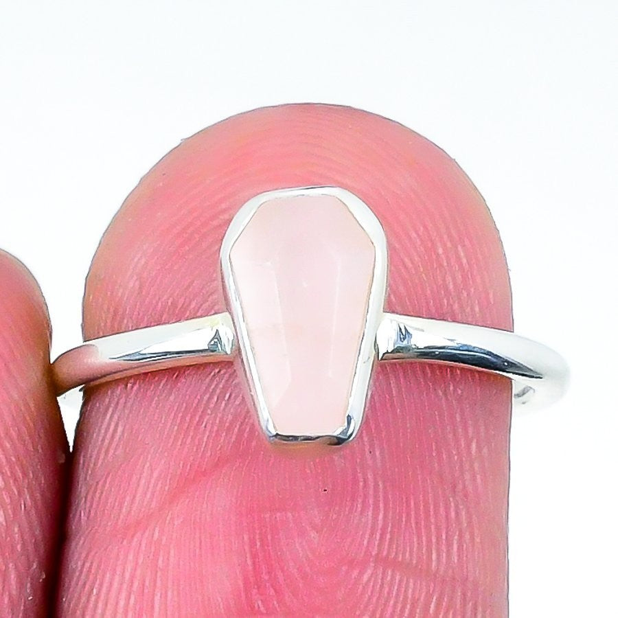 Rose Quartz Stone Solid Sterling Silver Band Unique Daughter Ring Jewelry Size 7