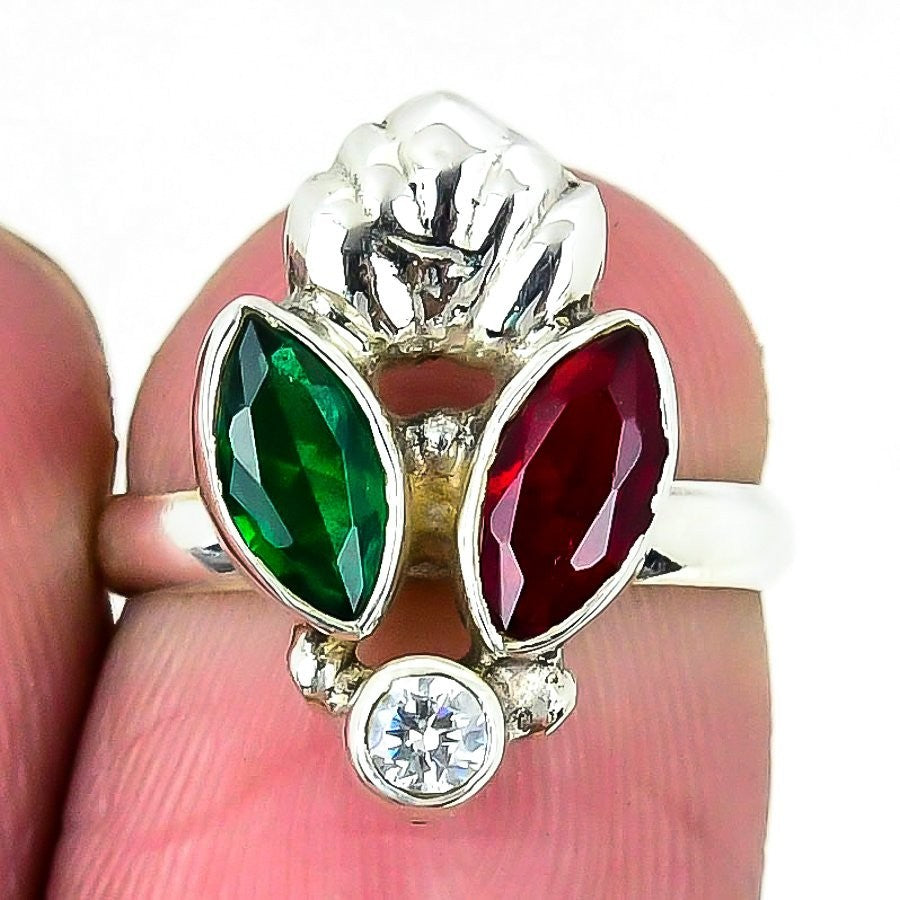 Mozambique Garnet Stone Boho Cluster Friend Gift Ring Jewelry 925Ā SolidĀ Silver