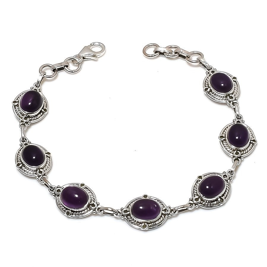 Sage Amethyst Gemstone 925 Silver Wedding New Chain Channel Set Bracelet Jewelry