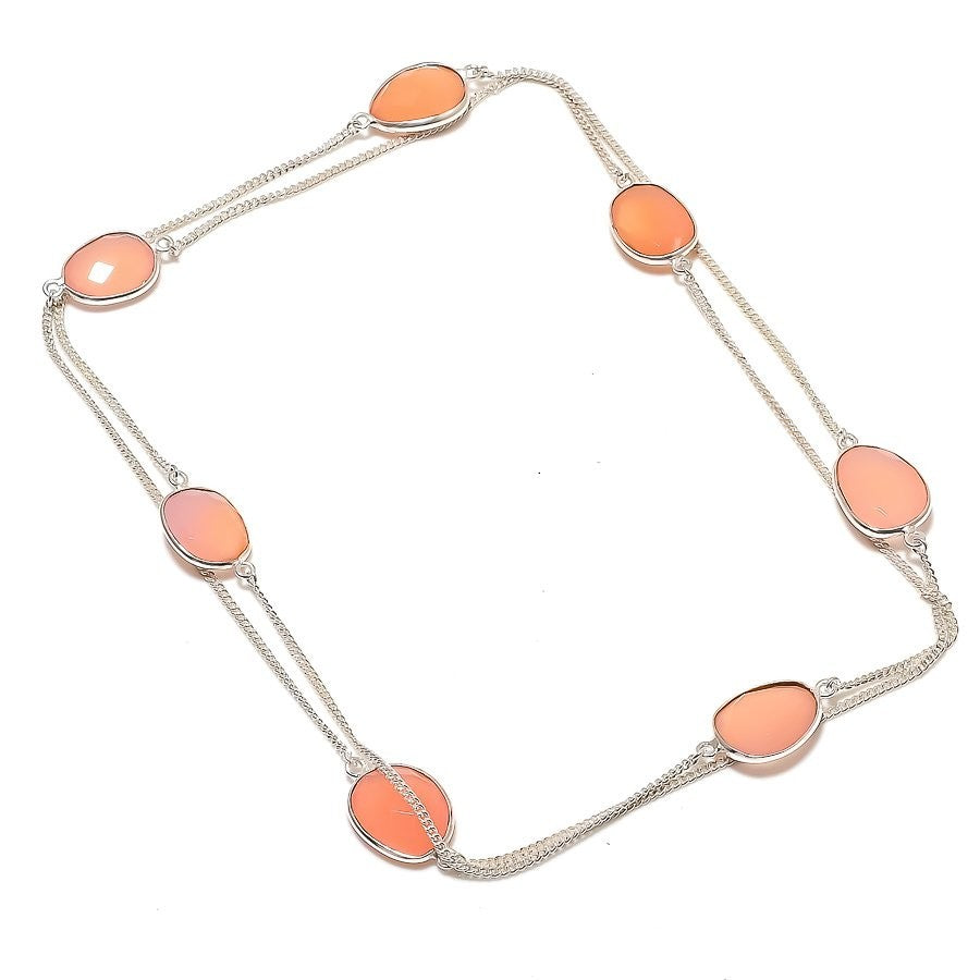 Natural Pink Chalcedony Solid Silver Wedding Chain Mother Anniversary Necklace