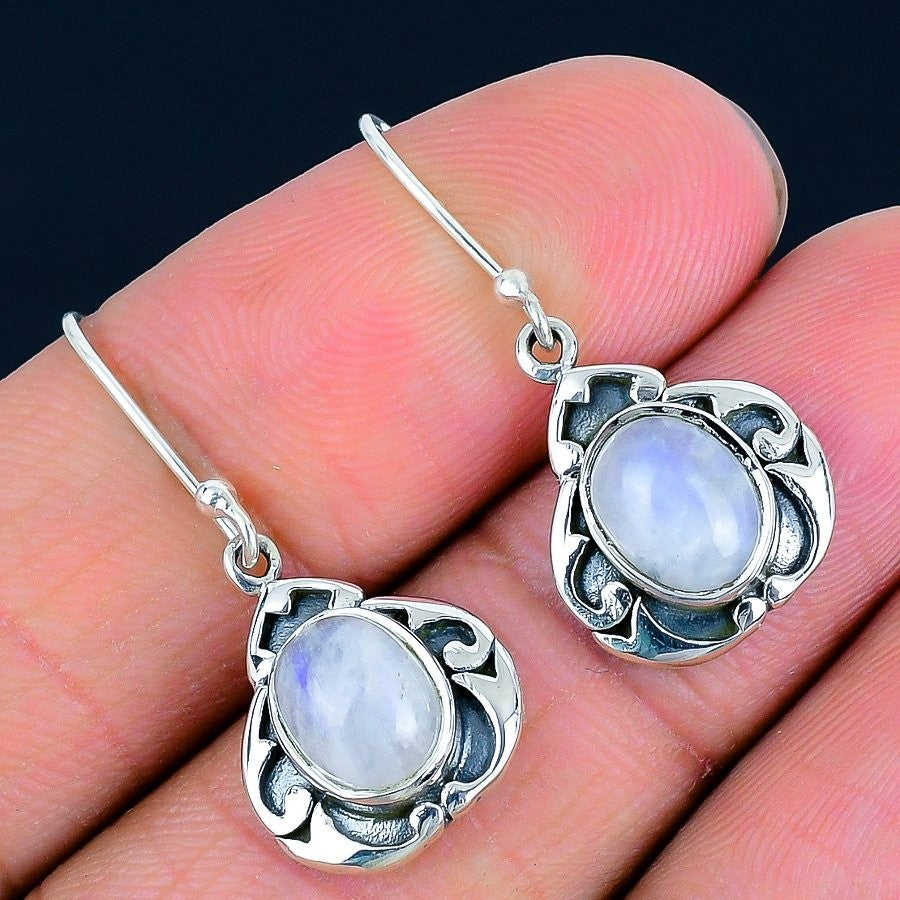 Friendship Day Sale Moonstone Gemstone Solid Silver Drop Dangle Wedding Earrings