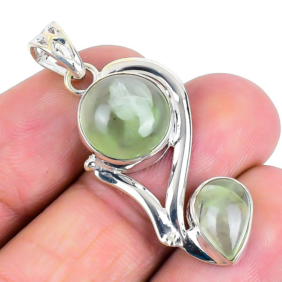 Natural Prehnite Friend Gift Handmade Mother Birthday Artisan Pendant 925 Silver