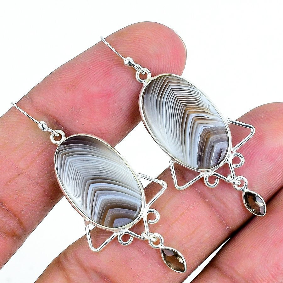 Crazy Lace Agate Gemstone Sterling Silver Dangling Wife Hook Bezel New Earrings