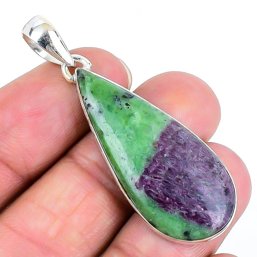 Ruby Zosite Stone 925 Sterling Silver Mother Bezel Sisters Gift Pendant Jewelry