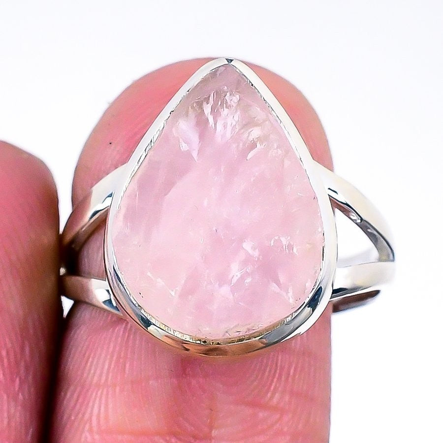Heart Chakra Rose Quartz Stone 925 Silver Promise Handmade Band Statement Ring