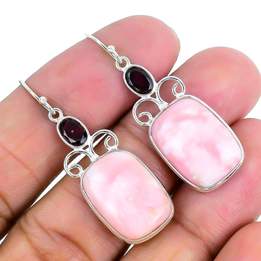 Pink Opal Gemstone 925 Silver Dangle Drop Best Sisters Gift New Earrings Jewelry