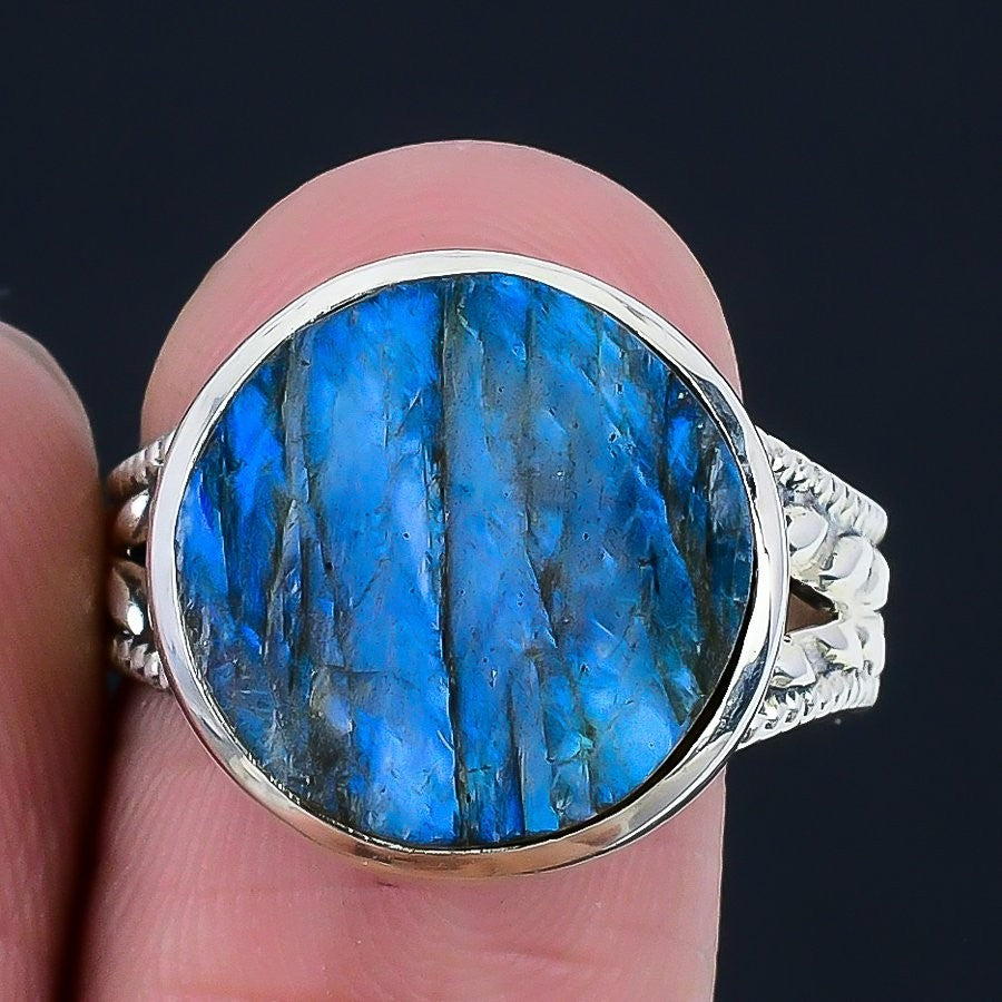 Natural Labradorite 925Ā SolidĀ Silver Sisters Day Statement Ring Jewelry Size 10