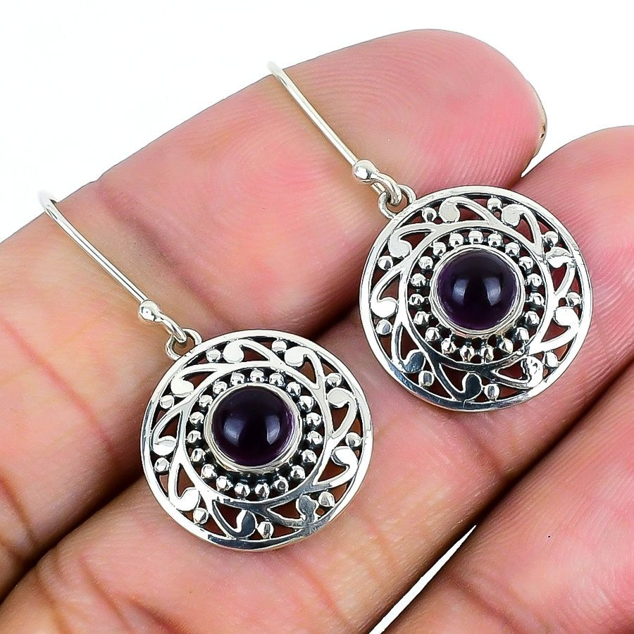 Sage Amethyst Gemstone Solid Silver Bezel Wife Dangle Drop Crown Chakra Earrings