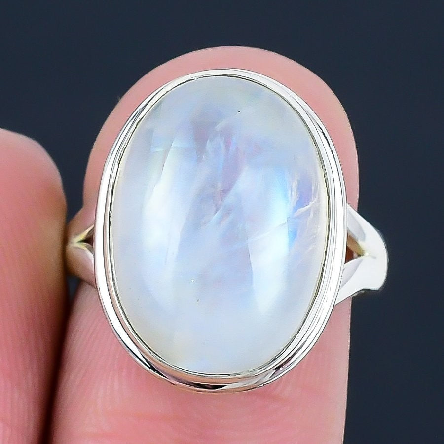 Rainbow Moonstone Gemstone 925Ā SolidĀ Silver Statement Sister Birthday Ring US 7