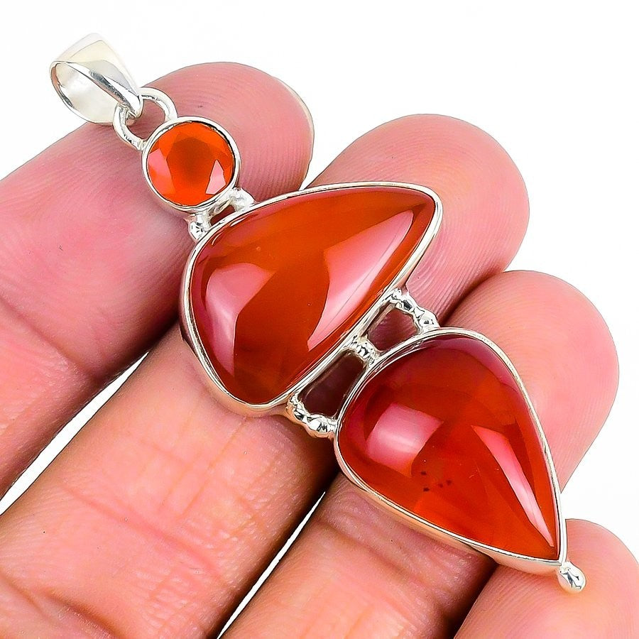 Natural Red Carnelian 925Ā SolidĀ Silver Bezel Sacral Chakra Wife Pendant Jewelry