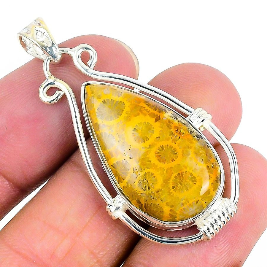 Fossil Coral Stone Solid Sterling Silver Birthday Sister Root Chakra New Pendant