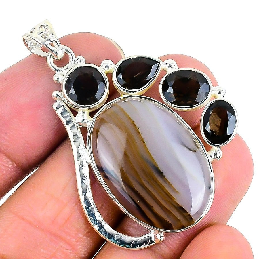 Montana Agate Gemstone 925 Sterling Silver Engagement Bezel Mother Boho Pendant