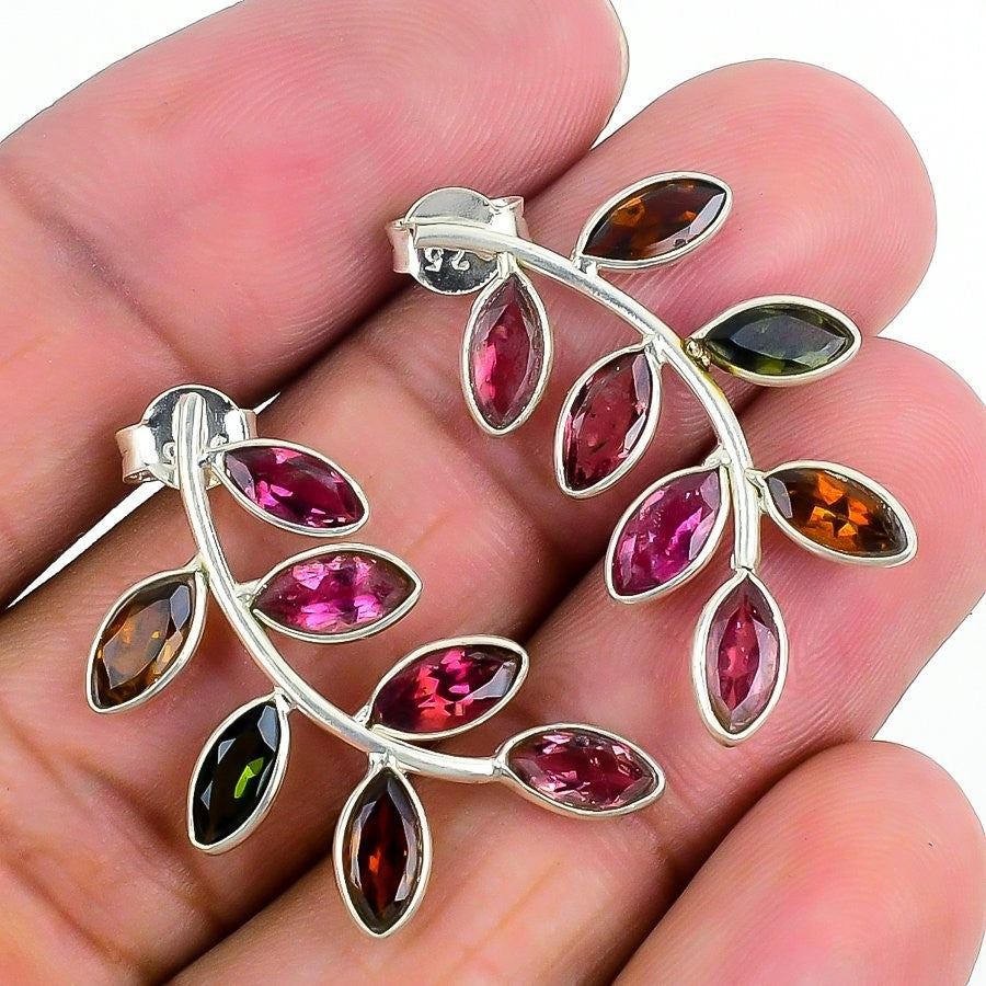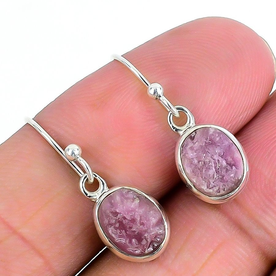 Pink Tourmaline Druzy Gemstone Drop Boho Earrings Jewelry Solid Sterling Silver