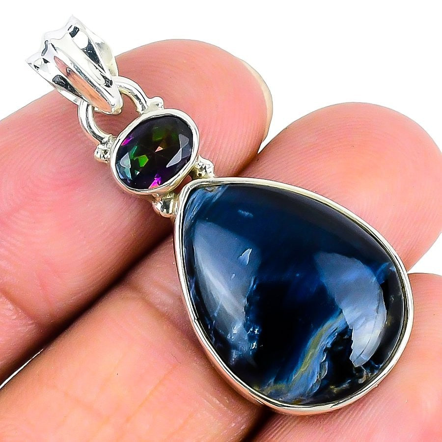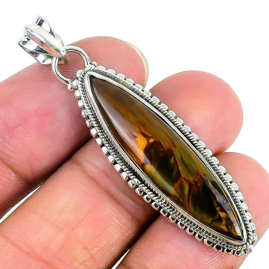 Pietersite Stone Bezel Sisters Day Birthday Handmade Pendant 925 Sterling Silver