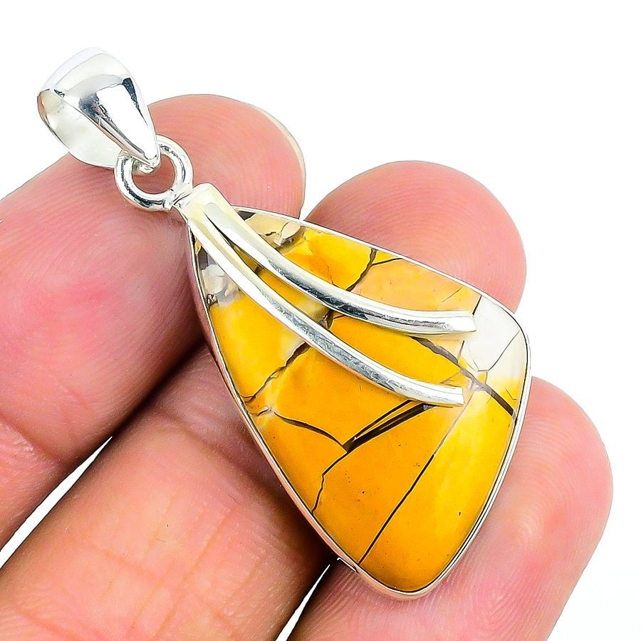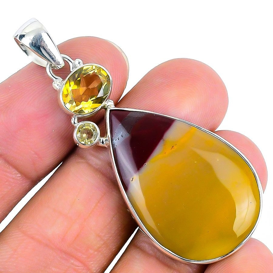 Mookaite Stone 925 Silver Bezel Anniversary Wife Wedding Boho Art Deco Pendant