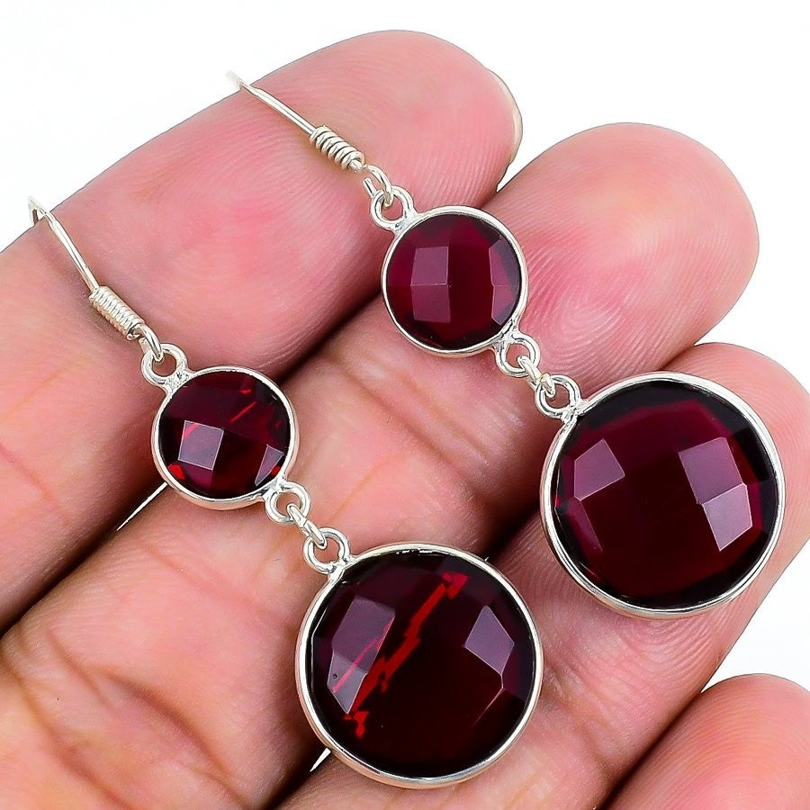 Garnet Treated Gemstone Sterling Silver New Drop Friendship Day Earrings Jewelry