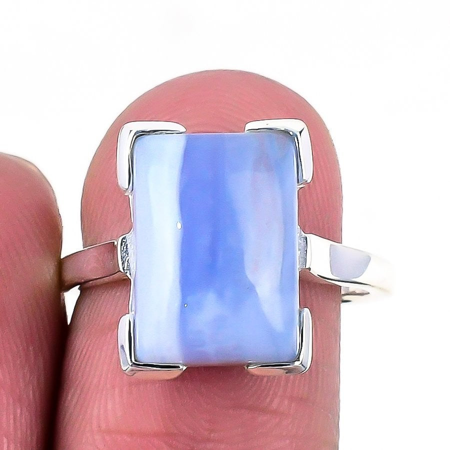 Blue Lace Agate Stone 925Ā SolidĀ Silver Daughter Statement Boho Ring Jewelry US 8