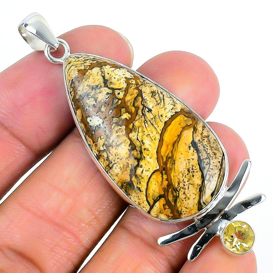 Picture Jasper Stone Sterling Silver Sisters Gift Trendy Engagement New Pendant