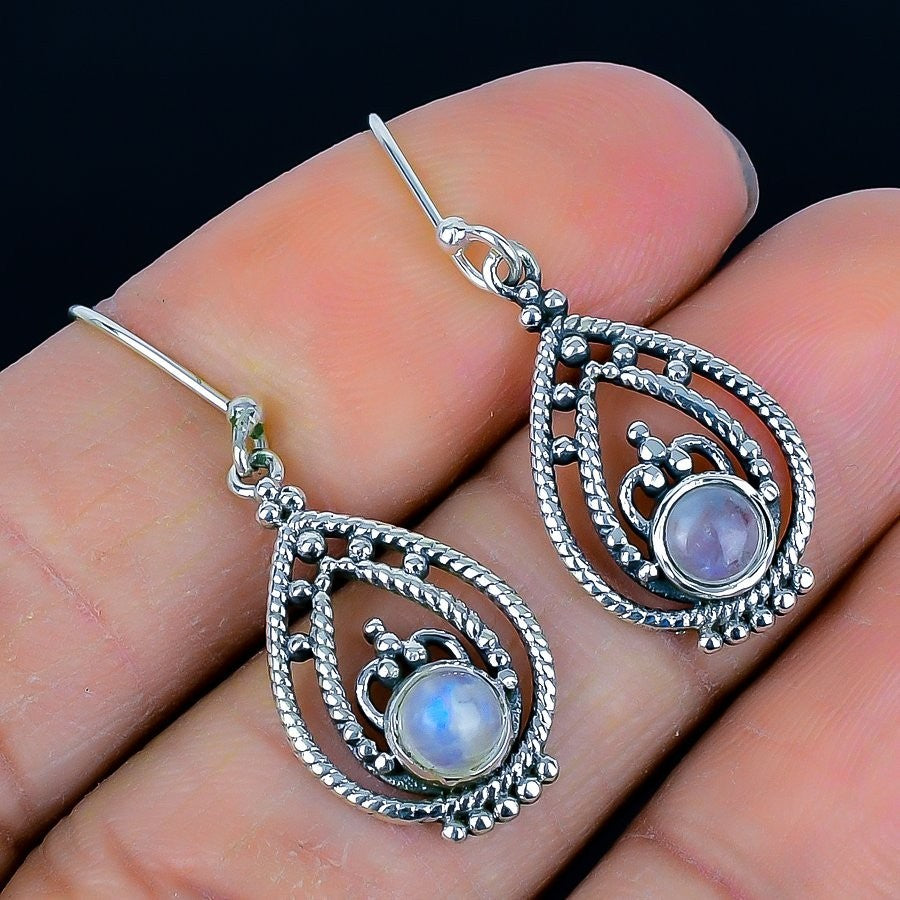 Rainbow Moonstone Stone Dangle Drop Wife Friend Gift Earrings 925Ā SolidĀ Silver