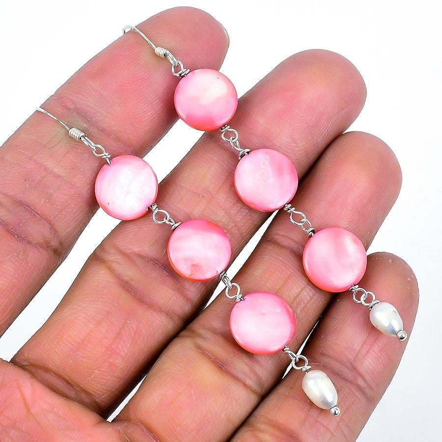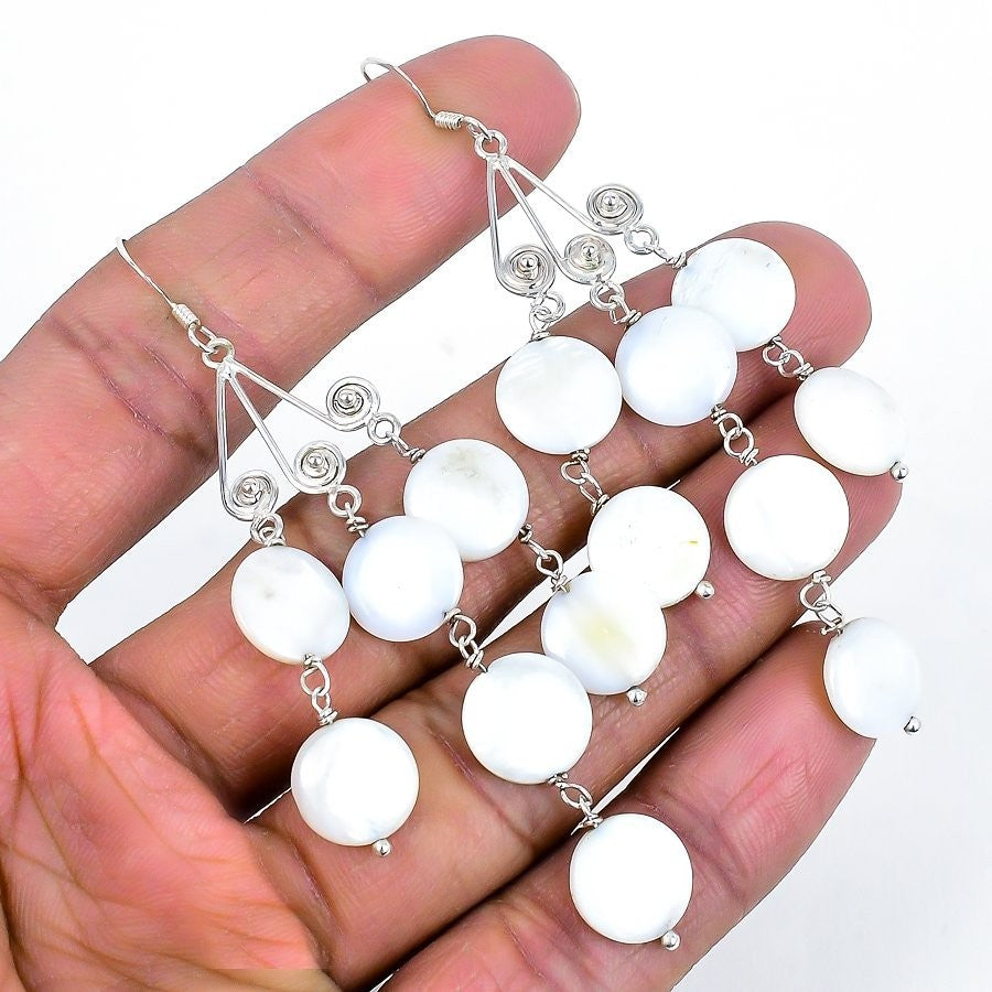 Mother Of Pearl Stone Sister Dangle Drop Friendship Day Earrings Sterling Silver