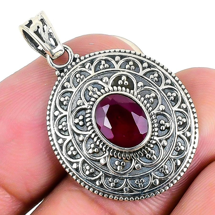 Friendship Day Sale July Red Ruby Stone Solid Sterling Silver Sister New Pendant