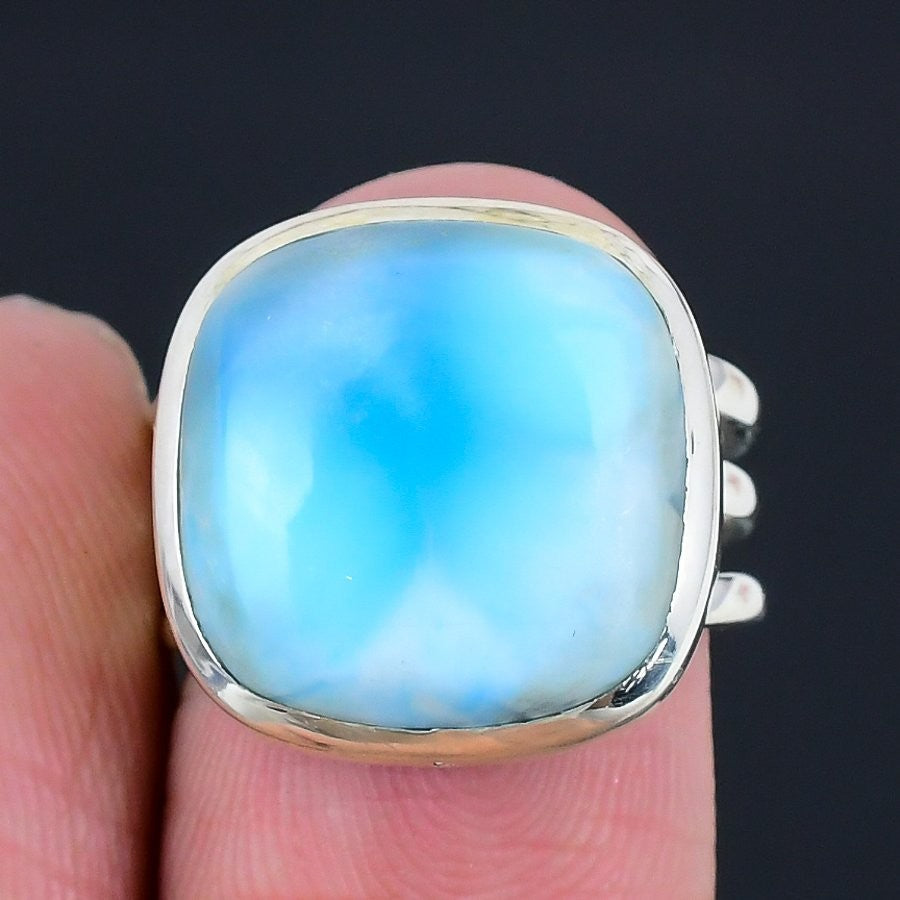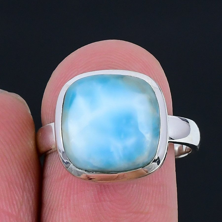 Natural Republic Larimar Solid Sterling Silver Statement Ring Jewelry Size 6.5
